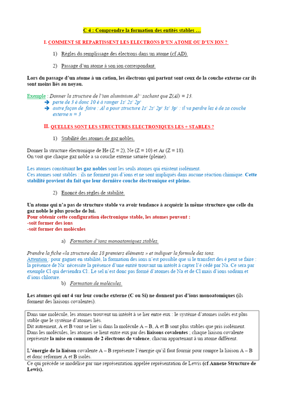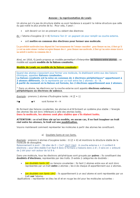 Annexe Structure De Lewis Correction Élèves