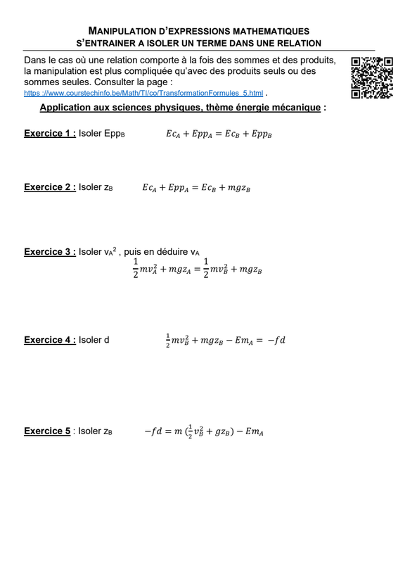 Fiche Expressions Littérales En Em Corr