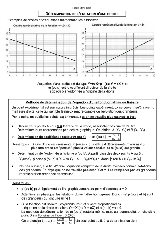 Fiche_méthode : Trouver l'équation d'une droite